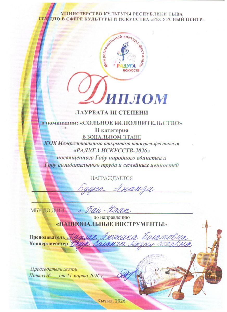 Будеп Ананда - Диплом Лауреата 3 степени.