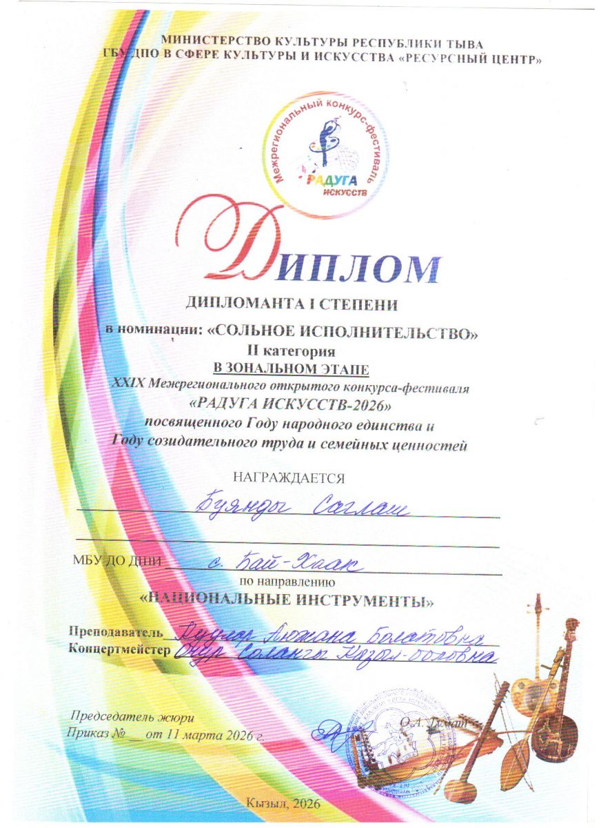 Буянды Саглаш - Дипломант 1 степени.